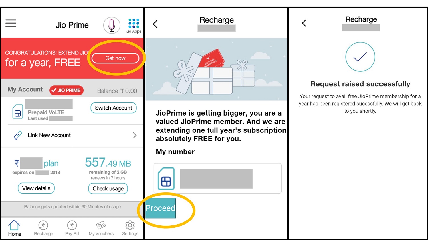 १. सध्या ज्या ग्राहकांच्या अकाऊंटवर प्राइम सेवा आहे त्यांना प्राइम सेवा पुढेसुद्धा फुकट मिळत राहील. MyJio अॅपमध्ये जाऊन खालील प्रमाणे कृती करा आणि प्राइम सेवा आणखी एक वर्षभर मोफत मिळवा!